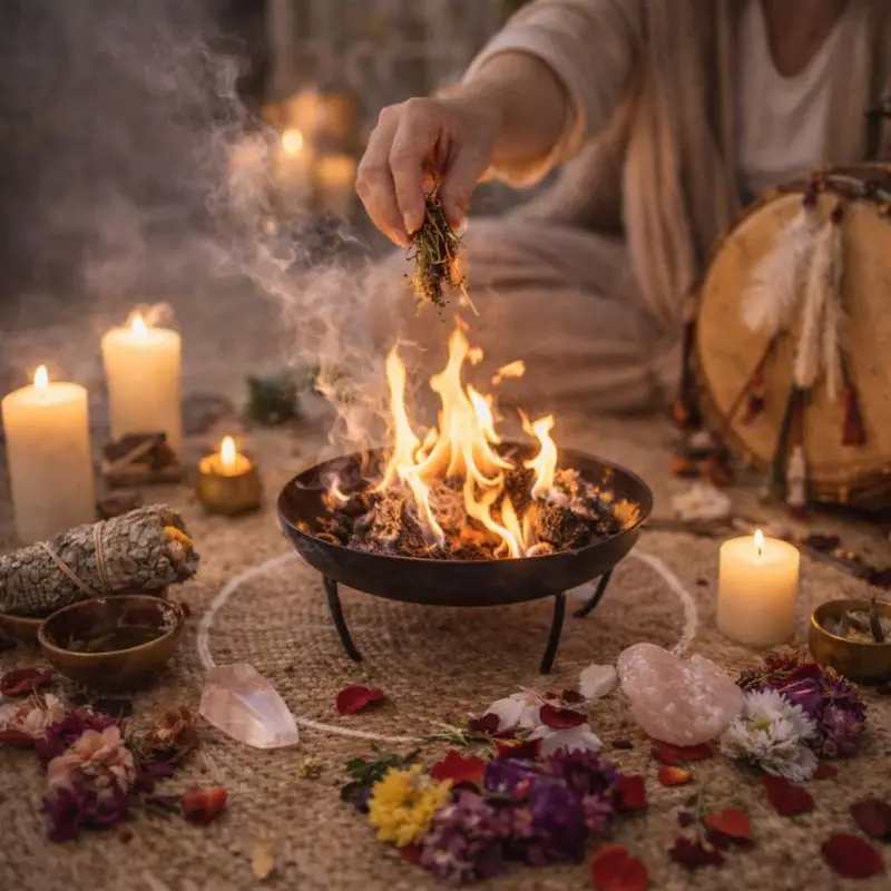 Cuando procede, combinamos terapia y ritual para sostener procesos y desbloqueos.